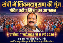 - रांची में गूंजेगा शिवमहापुराण: पंडित प्रदीप मिश्रा (सीहोर वाले) का आगमन तय, लाखों श्रद्धालुओं के जुटने की संभावना