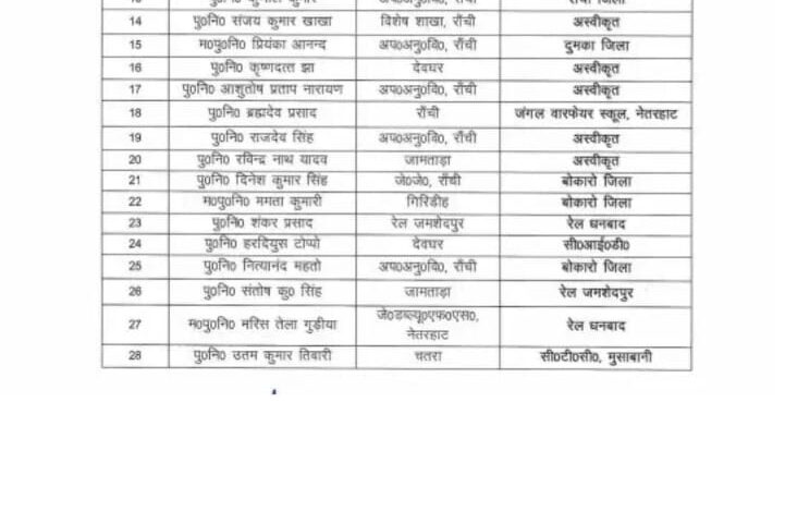 झारखंड में बड़ी संख्या में पुलिस इंस्पेक्टरों के तबादले हुए हैं