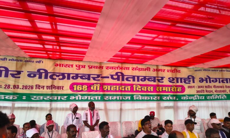रांची के ऑक्सीजन पार्क में अमर शहीद नीलाम्बर-पीताम्बर शाही भोगता खरवार का 168वां शहादत दिवस श्रद्धा, सम्मान और देशभक्ति के माहौल में मनाया गया। इस अवसर पर आयोजित भव्य कार्यक्रम में बड़ी संख्या में लोगों ने भाग लिया और शहीदों को भावभीनी श्रद्धांजलि अर्पित की। कार्यक्रम में राज्य के वित्त मंत्री राधा कृष्ण किशोर, नेता प्रतिपक्ष बाबूलाल मरांडी तथा रांची की मेयर रौशनी खालको, मुख्य रूप से उपस्थित रहे। सभी अतिथियों ने सभा को संबोधित करते हुए अमर शहीदों के अद्वितीय बलिदान को याद किया और उनके जीवन से प्रेरणा लेने का आह्वान किया।