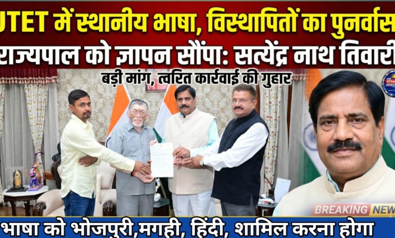 Ranchi: गढ़वा विधायक सत्येंद्र नाथ तिवारी ने JTET में स्थानीय भाषाओं को शामिल करने और विस्थापितों के पुनर्वास की मांग राज्यपाल को सौंपा ज्ञापन,